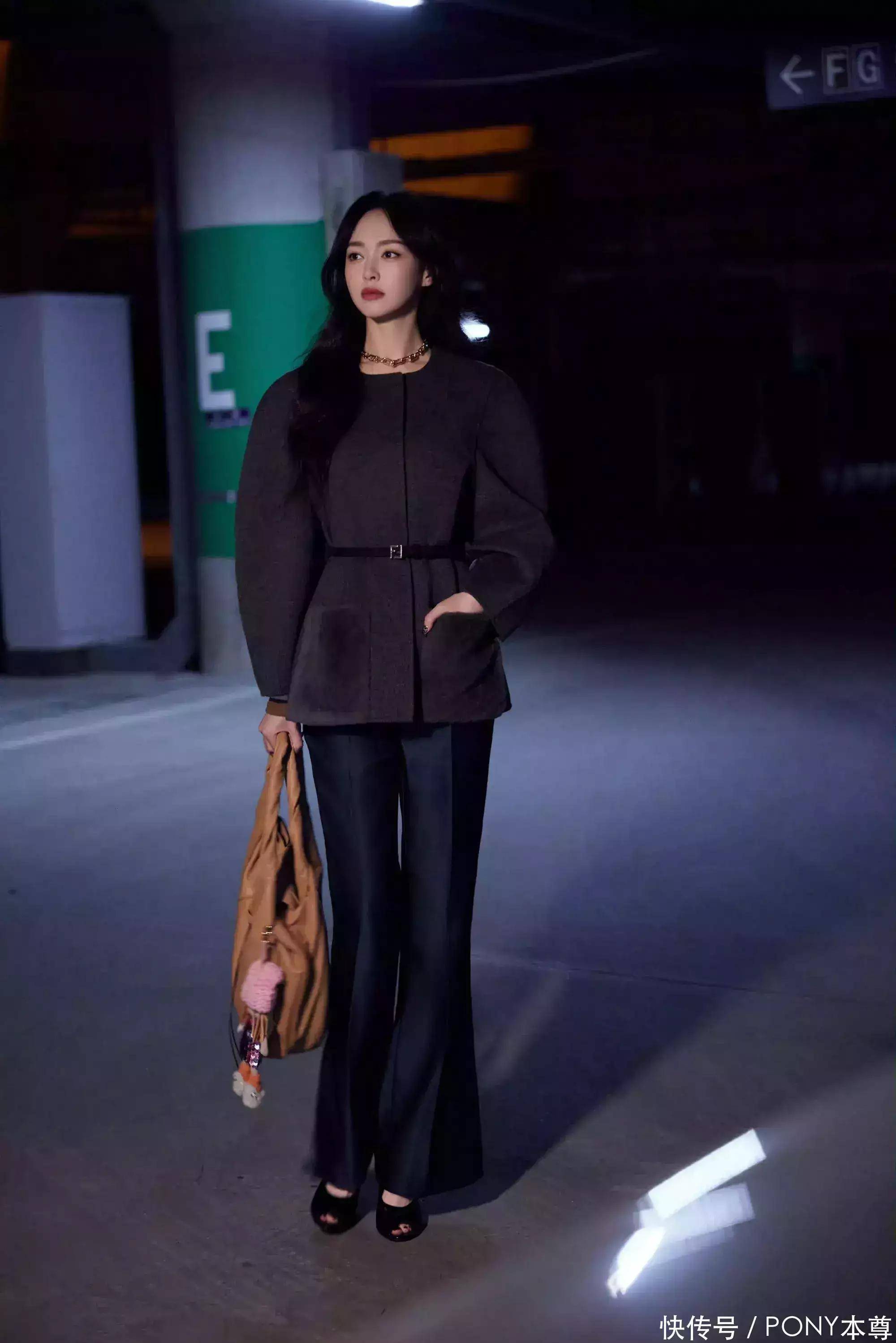 真正让这套造型从好看升级为惊艳的,是那条看似简单实则暗藏玄机的黑色皮质腰带。当唐嫣将腰带轻轻系在腰间时,原本oversize的外套立刻有了明确的身形轮廓。这条3厘米宽的哑光皮带不仅完美勾勒出她纤细的腰线,更通过上下分割的视觉效果,让她的身材比例接近完美的3:7黄金分割。这种穿搭小心机,正是明星造型师们最擅长的视觉魔术。